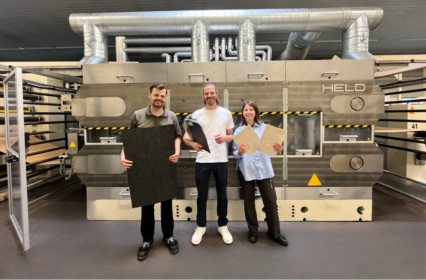 Das Forschungsprojekt NatureDeepDraw befasst sich mit der Entwicklung naturfaserverstärkter Organobleche für den Vakuumtiefziehprozess. Dabei geht es um die Entwicklung von Naturfasergeweben oder Vliesstrukturen, die mit thermoplastischen Matrixsystemen (z. B. PP, PLA, PA) kombiniert werden. Agata Ryżewska und Paul Zachäus vom ITA Institut für Textiltechnik der RWTH Aachen waren bei der Held Technologie GmbH zu Gast, um den Werkstoff zu entwickeln und zu testen.