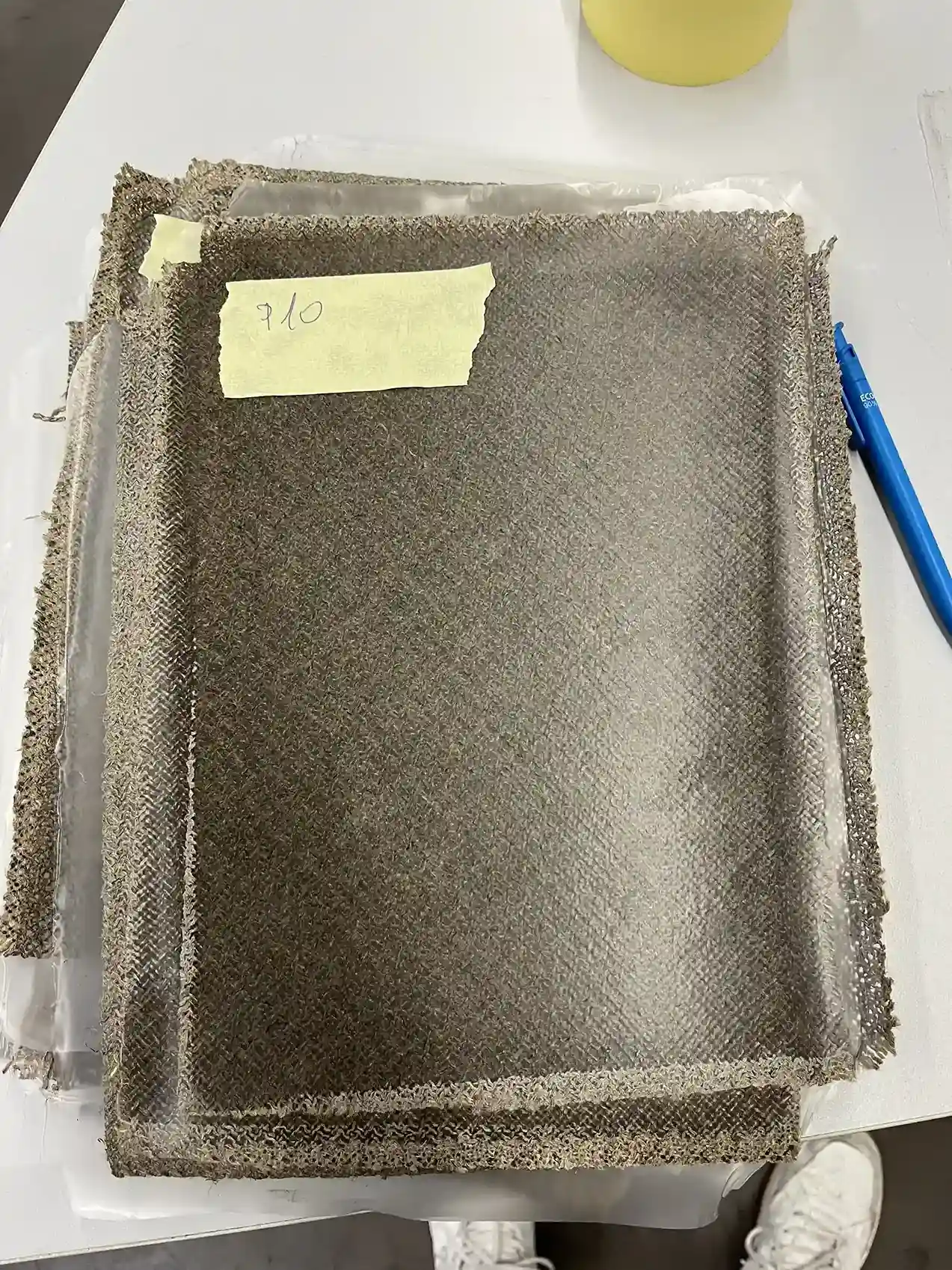 Organobleche bestehen aus endlosfaserverstärkten, thermoplastischen Matrices (z. B. PA6, PP, PEEK). Sie lassen sich aufheizen und umformen, wodurch sie im Automobilbau oder in Leichtbauanwendungen als Halbzeuge dienen. Mit tatkräftiger Unterstützung von Dr. Marcel Eberbach von Held wurden an einem Tag rund 100 Organobleche aus verschiedenen Flachstextilien hergestellt. Flachstextilien werden aus den Fasern der Flachspflanze hergestellt und sind auch als Leinen bekannt und zählen zu den ältesten Textilfasern der Welt. Charakteristisch sind eine hohe Reißfestigkeit, Strapazierfähigkeit, eine kühlende Wirkung durch gute Feuchtigkeitsaufnahme und eine schmutzabweisende Oberfläche. Die Prozessparameter (Temperatur, Druck, Geschwindigkeit) wurden mehrfach angepasst, um ideale Produktionsbedingungen zu definieren. Eine hohe Qualität schützt das Material vor Brechen der Naturfasern beim Umformen.
